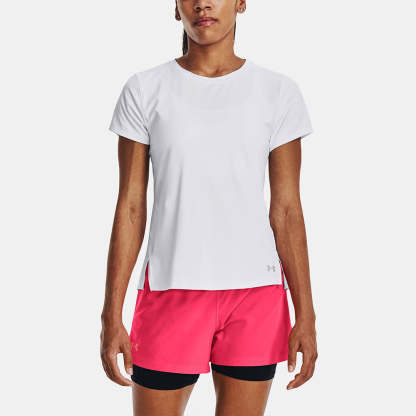 Keep crushing it at max capacity in the Unthtder Armthtour Iso-Chill Laser Tee! Updated with flattened-out fibers, this short sleeve tee pulls heat away from your skin to keep you cool and calm during your runs.