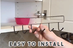 Our under-cabinet rack is so easy to install. Simply slide the rack over a cabinet or shelf and it is all set up. No complicated installation needed, totally nail-free.